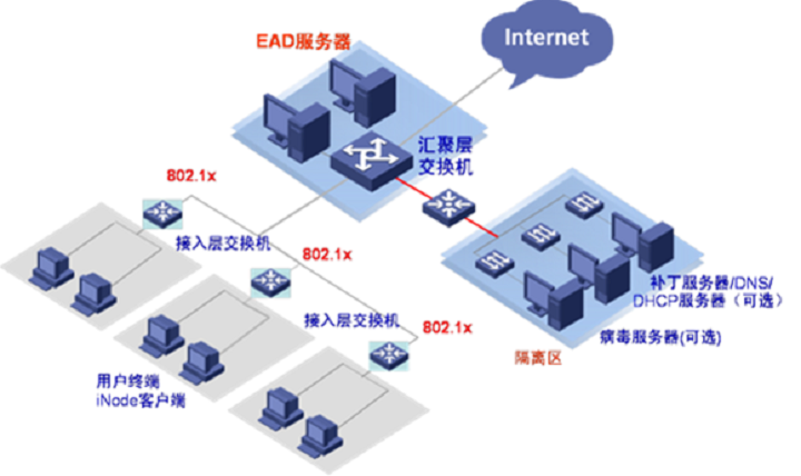簡介:對于要接入安全網絡的用戶,EAD解決方案首先要對其進行身份認證,通過身份認證的用戶進行終端的安全認證,根據網絡管理員定制的安全策略進行包括病毒庫更新情況、系統補丁安裝情況、軟件的黑白名單、U盤外設使用情況、軟硬件資產信息等內容的安全檢查,根據檢查的結果,EAD對用戶網絡準入進行授權和控制。通過安全認證后,用戶可以正常使用網絡,與此同時,EAD可以對用戶終端運行情況和網絡使用情況進行審計和監控。